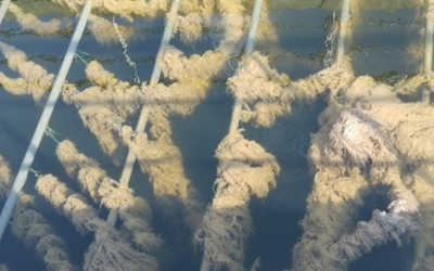 新型微生物载体技术(碳素纤维生态草技术) 碳素纤维是生态性水处理的高科技材料,碳素纤维生态草具有极高的吸附性与生物亲和性,微生物菌群在其表面形成粘着性活性生物膜。这些微生物以有机污染物为食,通过自身的新陈代谢作用分解水体中
