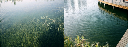 在沉水植物生长期内,吸收水体中的营养盐转化为自身生长所需的能量,变向将水体中营养物质转出;沉水植物可以起到固定底泥的作用;沉水植物是微生物的优良载体,具有量多面广的特点,为大量的硝化细菌、反硝化细菌、光合菌提供繁殖和定居场所,直接促进分解水中的氮、磷等有机元素,明显提升水质,同时沉水植物可为鱼类、底栖动物提供觅食、产卵、栖息场所,并为浮游动物提供避难所,沉水植物有利于提高水体生态系统的生物多样性和稳定性。